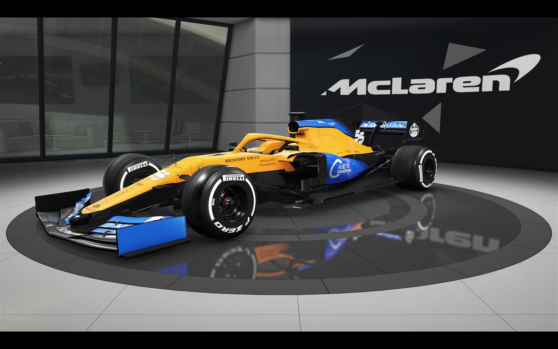 McLaren have introduced a new strip of blue across the engine cover and radiators which is replicated in this 2020 livery mod.