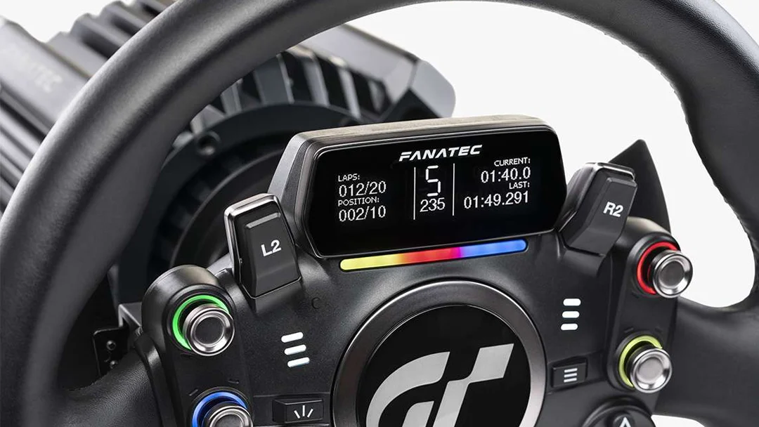 When it comes to comparing both steering wheels, once again the offering has similarities and differences. The Fanatec steering wheel offers extra functionality over the MOZA wheel due to the inclusion of an OLED display. This display can show live telemetry and allow you to scroll through multiple configurations. The MOZA RS V2 by comparison, only has a set of LED rev lights and no screen.