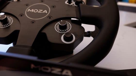 Coming in at under £250 / $280, the CS wheel is the cheapest wheel in MOZA’s current lineup. It features a smaller range of inputs on the face of the wheel compared to the GS, FSR and RS wheels.